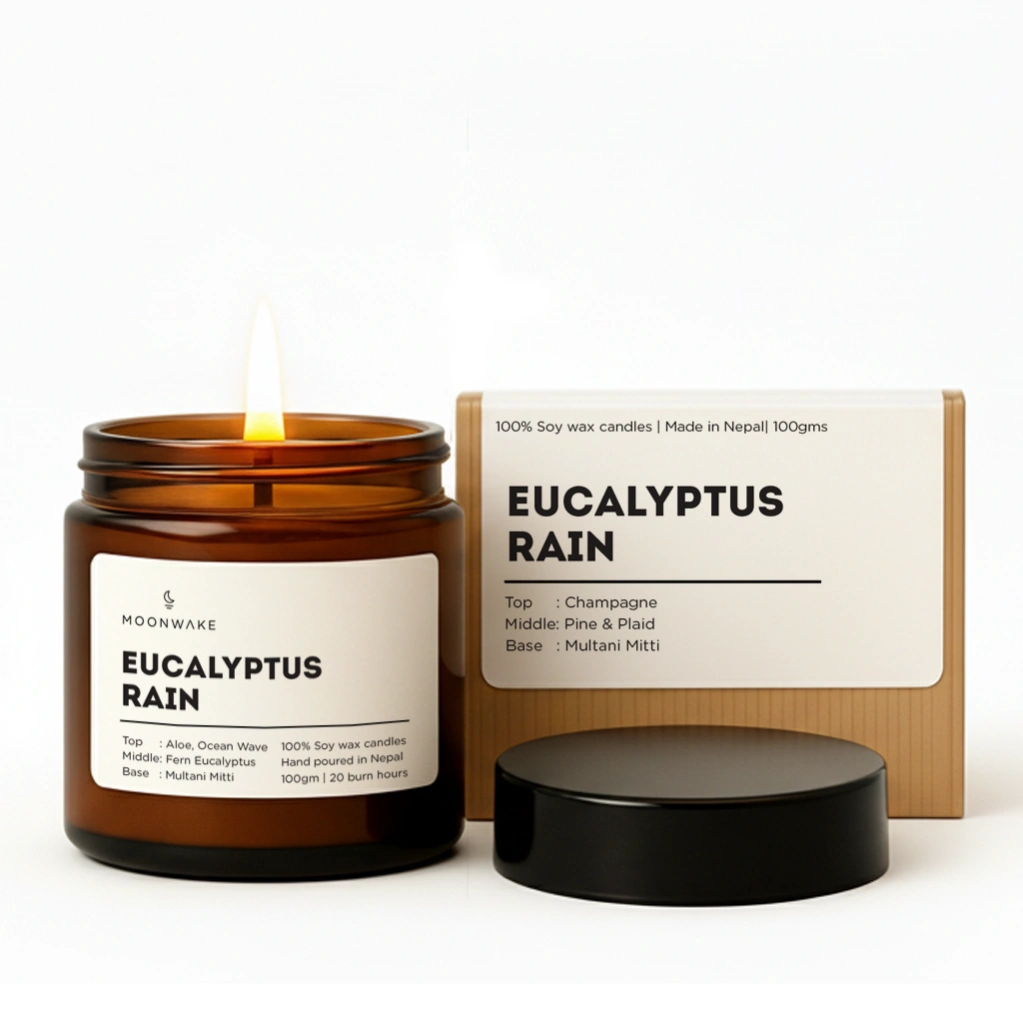 Rediscover the joy of earthy, refreshing rain with the Eucalyptus Rain Pure Soy Wax Candle. A candle that soothes your senses and elevates your space.
