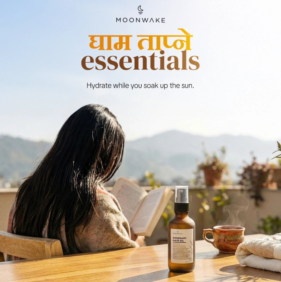 Say goodbye to hair fall and dullness—embrace the natural goodness of Moonwake’s Rosemary Hair Oil for stronger, shinier, and healthier hair every day!